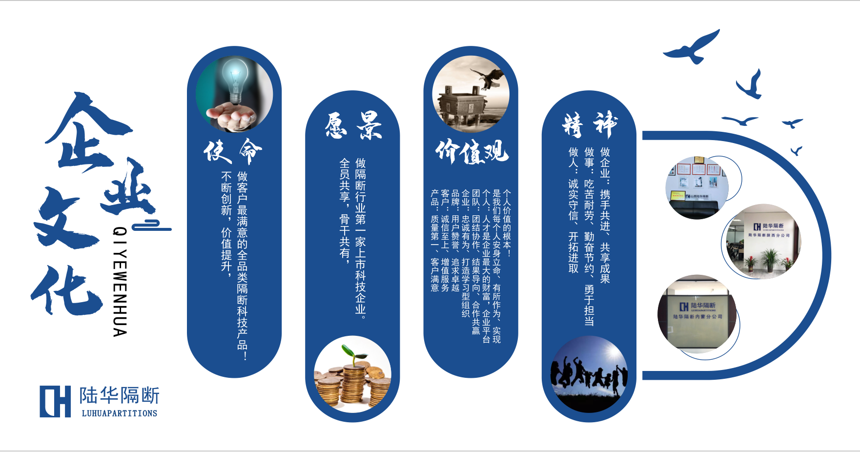 企業(yè)愿景:全員共享,骨干共有,做隔斷行業(yè)******家上市科技企業(yè)